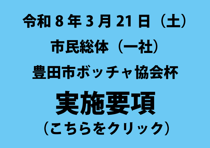 【実施要項】 ↓↓↓↓↓↓↓こちらをクリック ※必ずご確認ください 20260215市民総体(一社)豊田市ボッチャ協会杯 実施要項 (1) 20260321市民総体ボッチャ大会申し合せ事項(20260211) 【申し […]